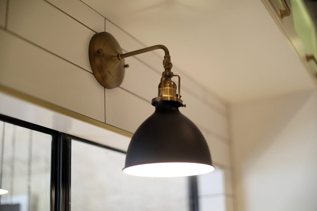 A Chandler Kitchen Remodeling Project highlighted with this Black and Gold lighting fixture.