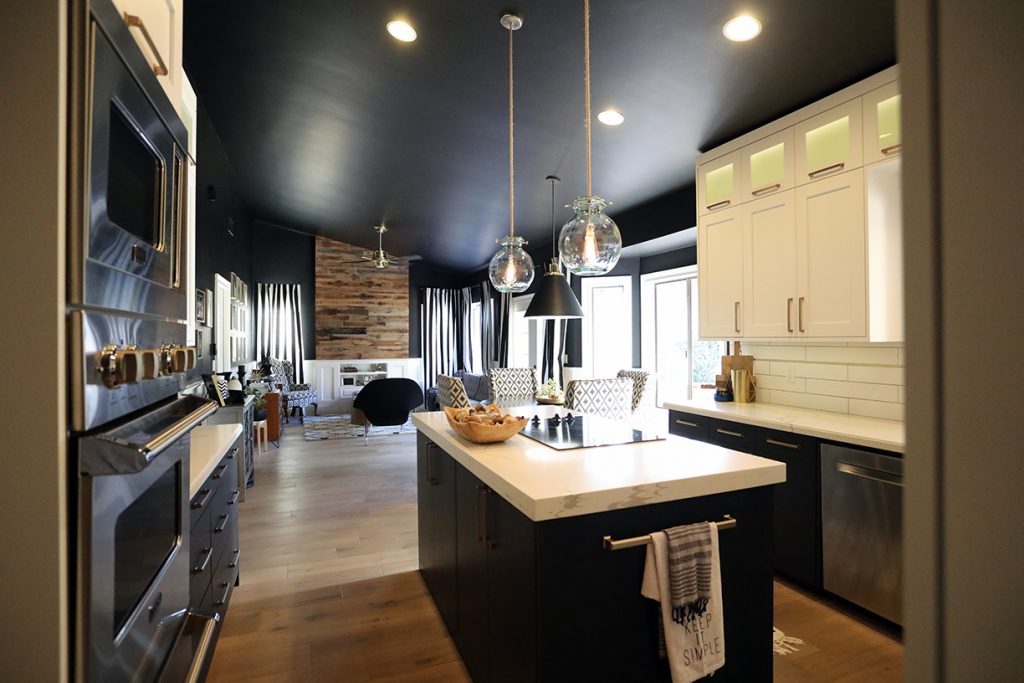 A Design/Build Kitchen Remodel finished off with black painted walls and ceiling to compliment the French White Oak Flooring.