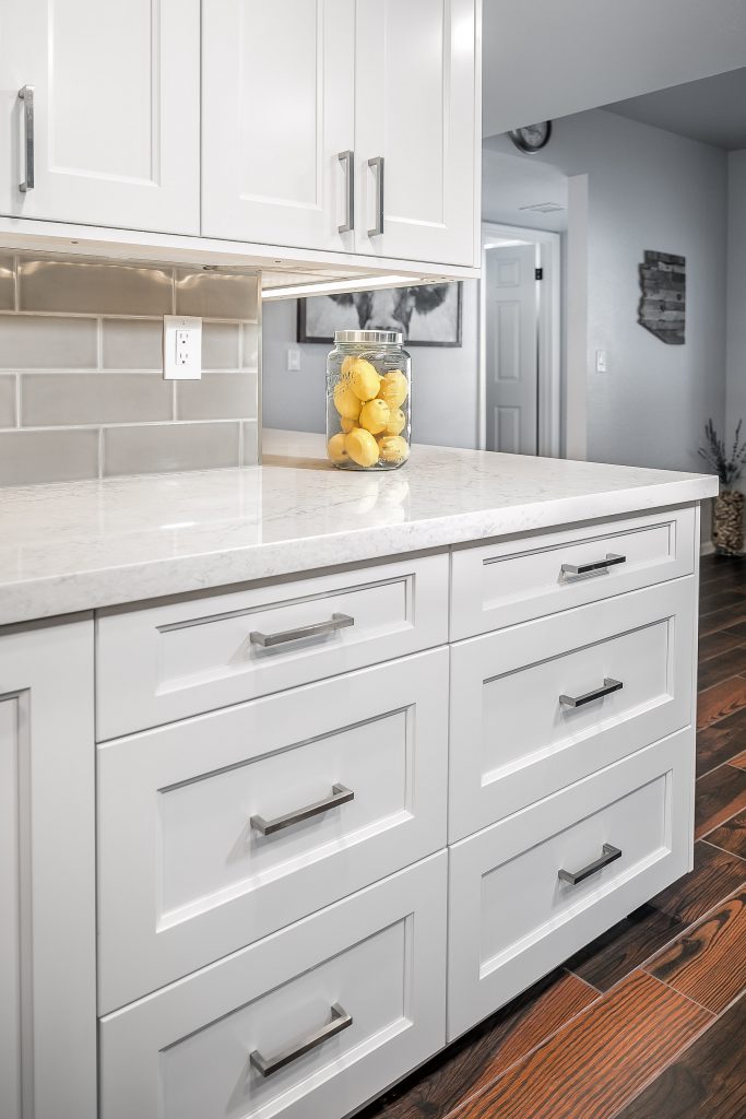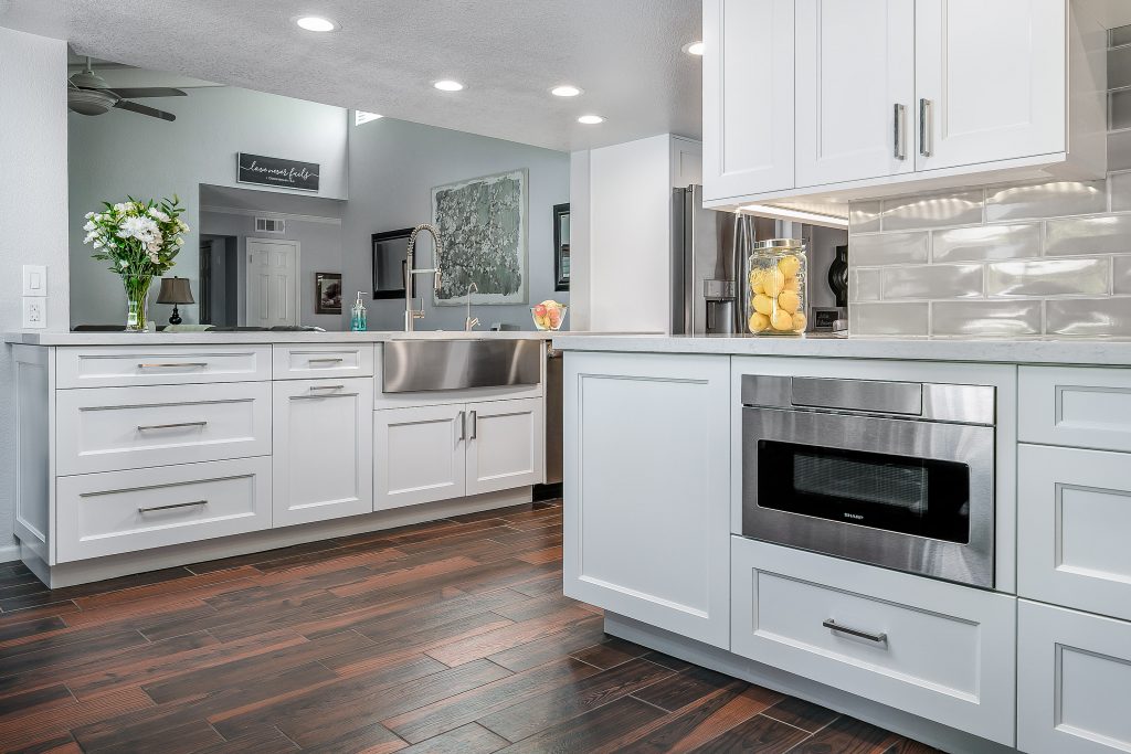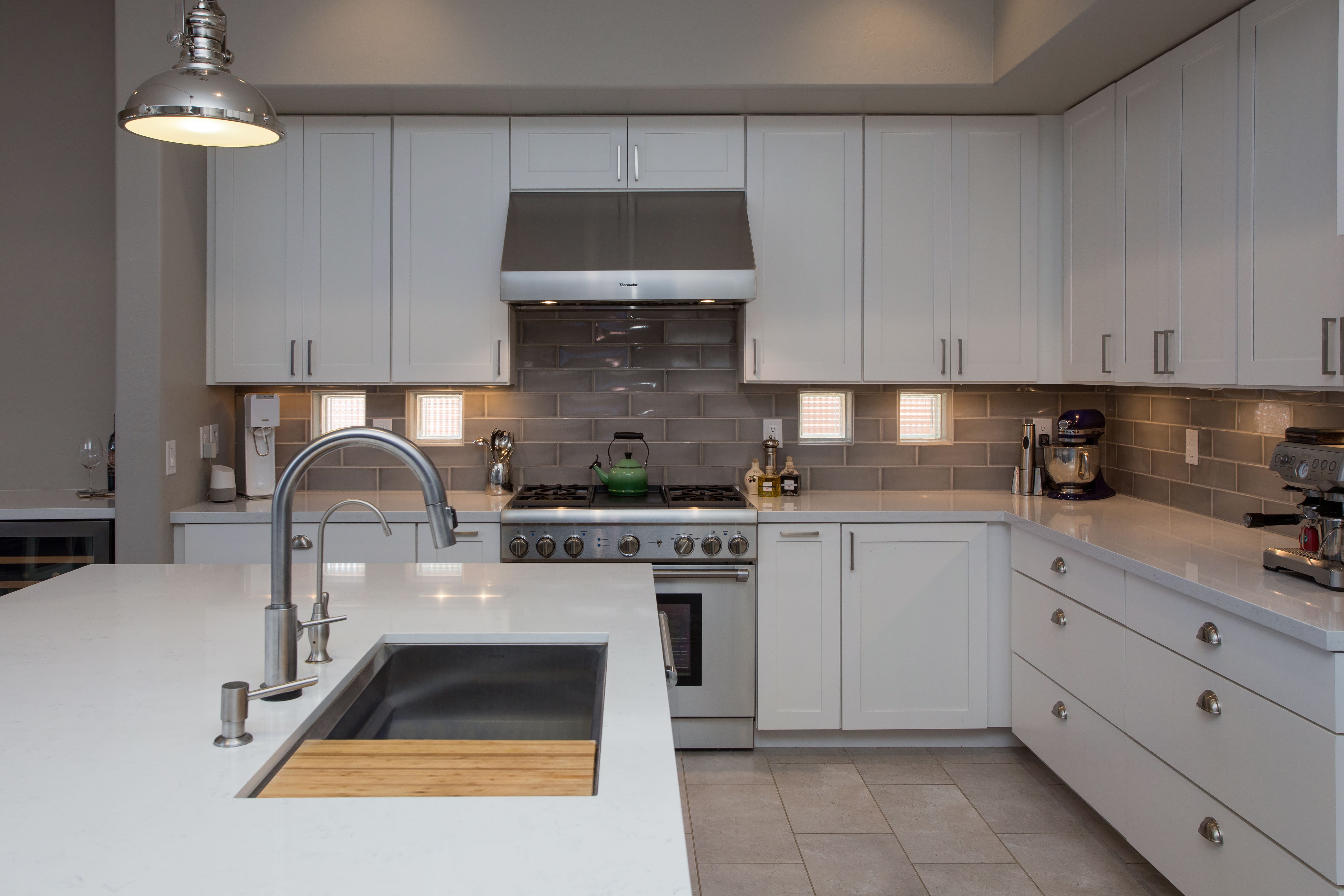 White shaker cabinets from Bellmont are featured in this kitchen remodel completed in Tempe