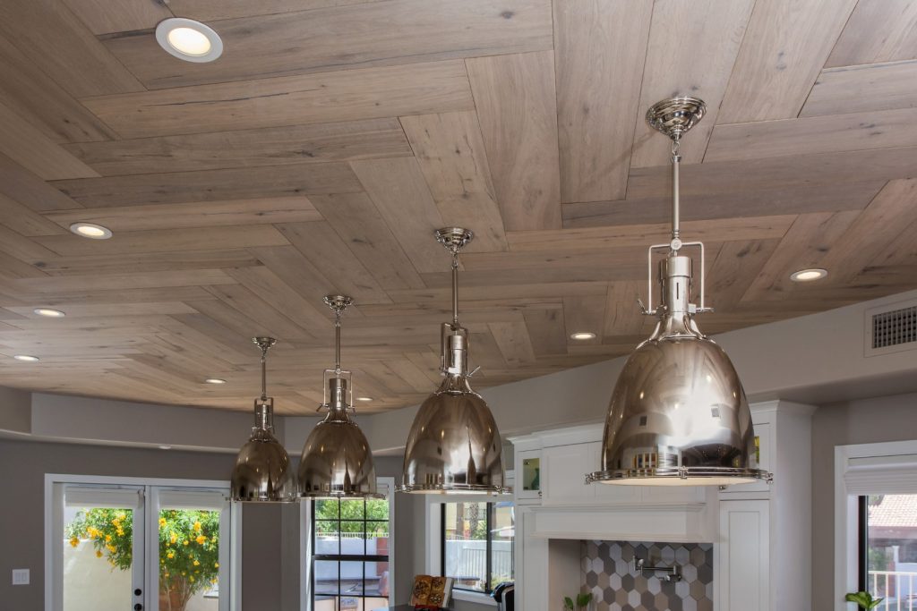Custom ceiling treatment with recessed can lighting, and special pendant lights finish off this Phoenix Kitchen Design & Remodel project.