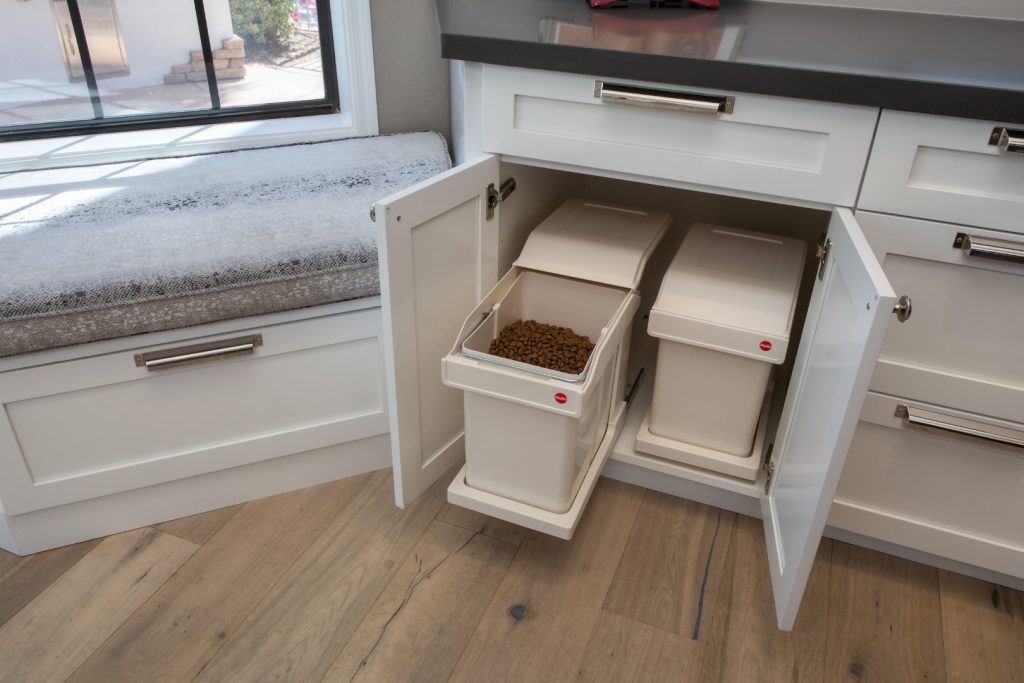 Hochuli Design added this unique dog food pull-out in this Phoenix Kitchen Remodel.