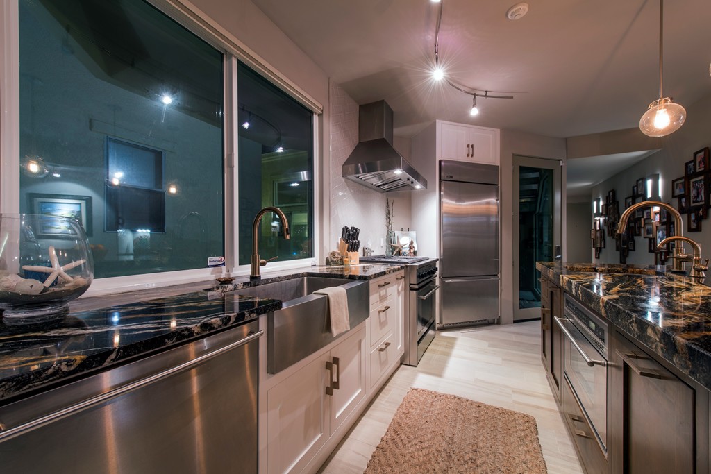 Black and White and Gold finishes complete this kitchen remodeling in Chandler, AZ