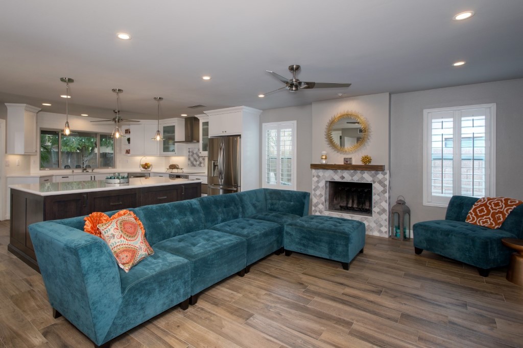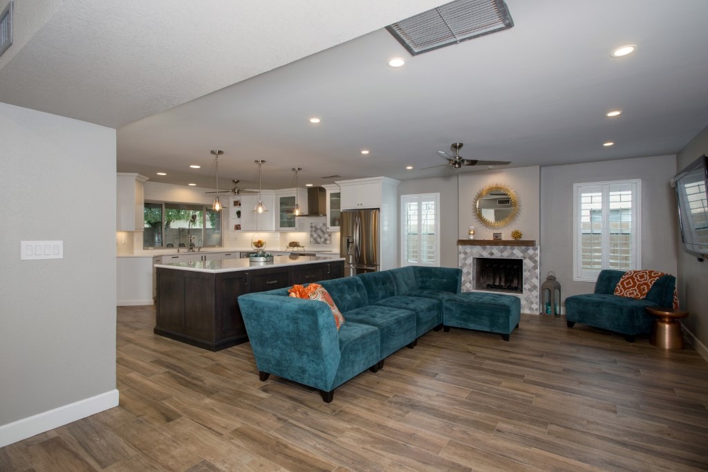 Tempe Kitchen Remodeling Contractor Hochuli design completes a open concept living room