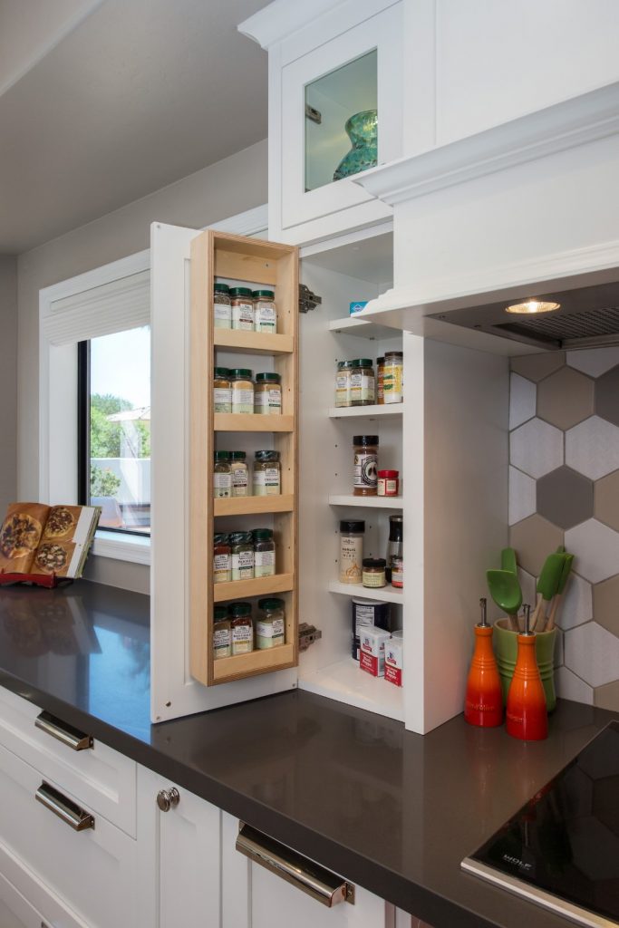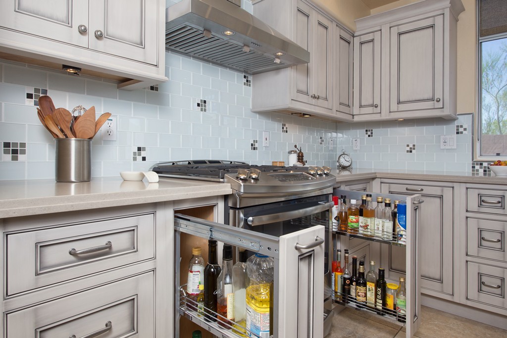 Spice storage conveniently located right next to the cooktop in this Phoenix Kitchen Remodeling project.