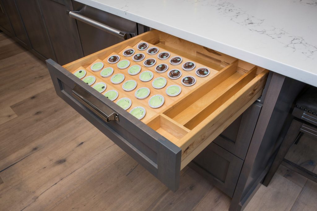 Keurig capsule storage pull-out drawer in Design/Build Kitchen Remodel in Phoenix