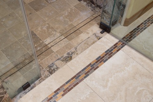inline curbless barrier free shower drain in a master bathroom remodeling project in phoenix, az. Hochuli design and remodeling team services scottsdale, mesa, gilbert, paradise valley, tempe, arcadia areas. general contracting firm design build remodeling and room additions