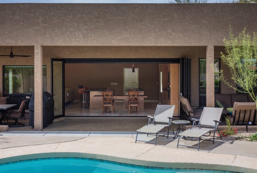 A Design/Build Kitchen Remodel completed in Paradise Valley. Features include Western Window folding door system to open-up the indoors to the outdoors.