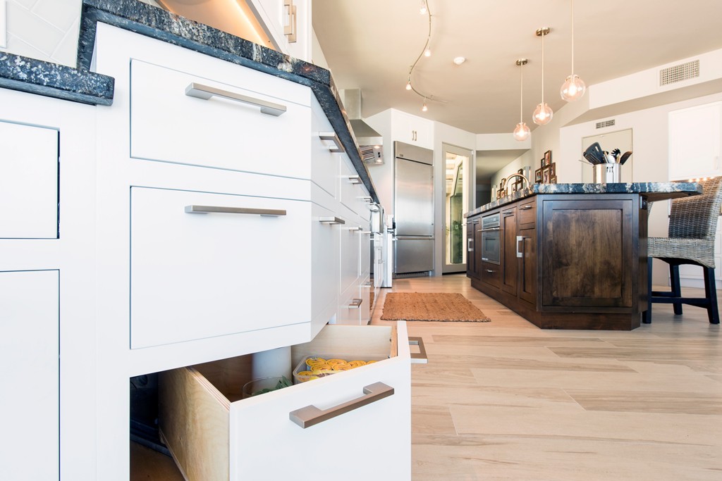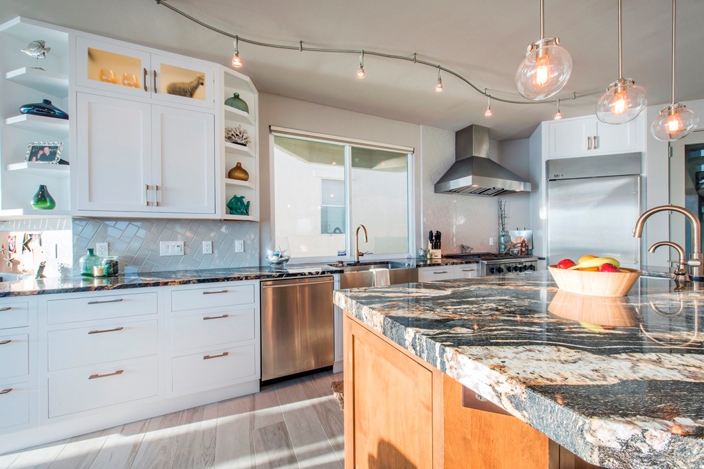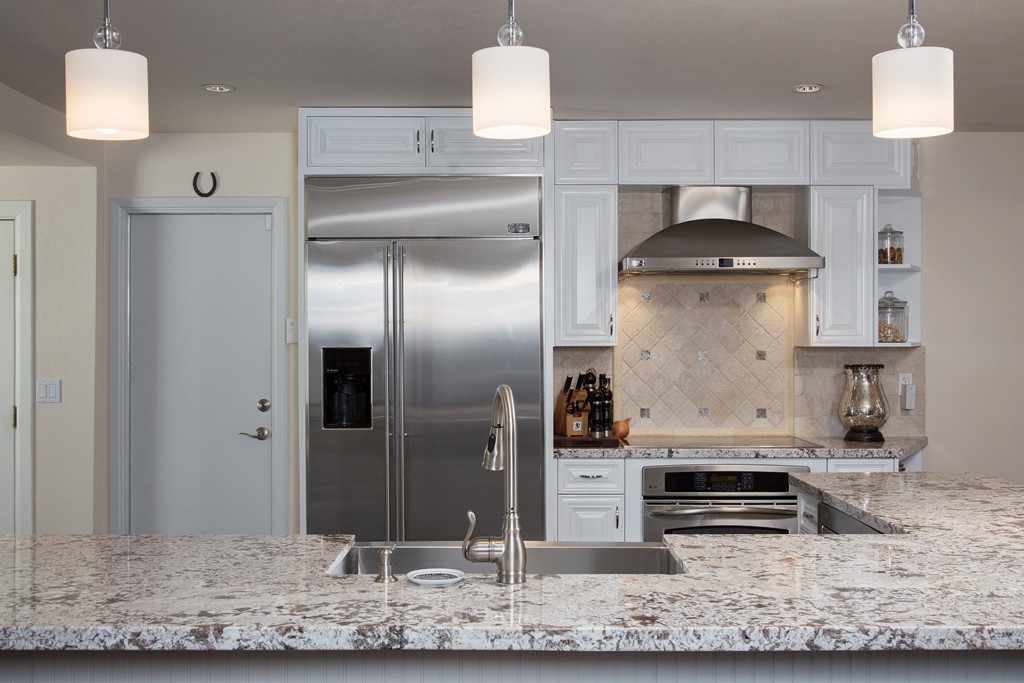 Interior design and remodeling project in Scottsdale, AZ includes white cabinets, granite counterts, nickel fixtures and soft-close drawer hardware. General Remodeling Contractor and room additions in scottsdale, paradise valley, arcadia, tempe, mesa, gilbert, and chandler arizona